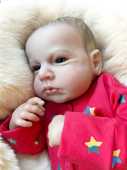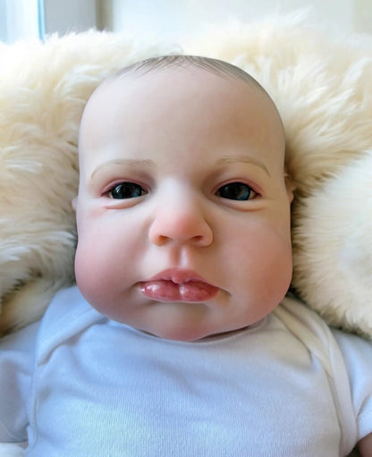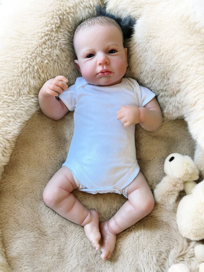 Meet Leo – a beautifully handcrafted, open-eyed reborn baby boy doll with a bright, lifelike gaze that captures the wonder of a real newborn. With his stunning painted hair and realistic expression, Leo is perfect for collectors and first-time reborn doll parents alike.