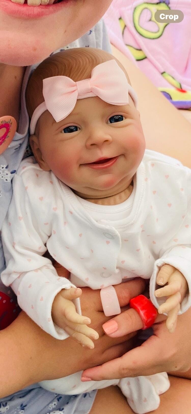 Meet Polly – a beautifully handcrafted, open-eyed reborn baby girl doll with a bright, lifelike gaze that captures the wonder of a real newborn. With her stunning painted hair and realistic expression, Polly is perfect for collectors and first-time reborn doll parents alike.