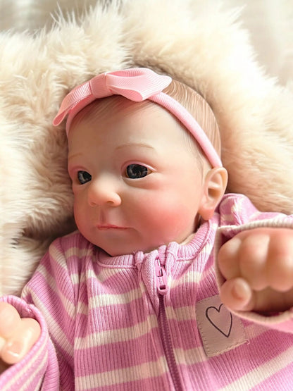 Meet Primrose – a beautifully handcrafted, open-eyed reborn baby girl doll with a bright, lifelike gaze that captures the wonder of a real newborn. With her stunning painted hair and realistic expression, Primrose is perfect for collectors and first-time reborn doll parents alike.